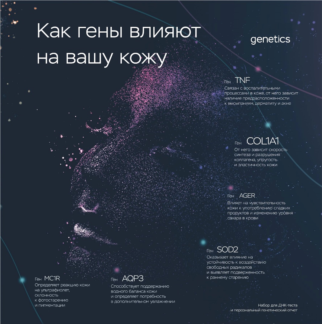 +7 (499) 490-28-01Генетическое исследование поможет определить какие косметические программы и средства нужно использовать, чтобы сохранить здоровье. Возможности ДНК анализа для молодости и красоты кожи: